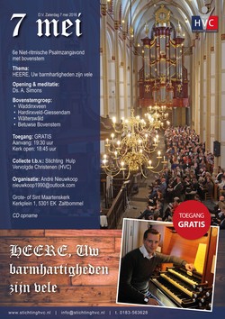 Alweer voor de 6e keer wordt de niet-ritmische Psalmzangavond met bovenstem georganiseerd in de Grote- of Sint Maartenskerk te Zaltbommel.
