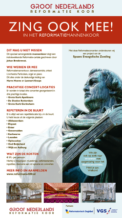 Speciaal voor mannen die van zingen houden richt Reformatie500 het Groot Nederlands Reformatie Mannenkoor onder leiding van Harm Hoeve.