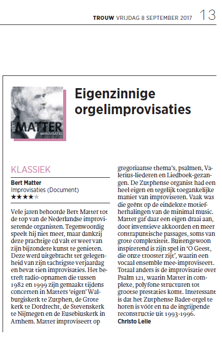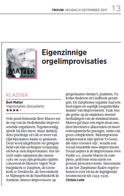 Recensie cd Bert Matter - Eigenzinnige orgelimprovisaties